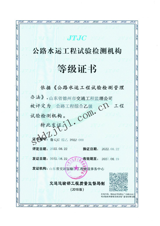 交通運輸部公路工程試驗檢測綜合乙級資質
