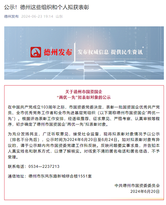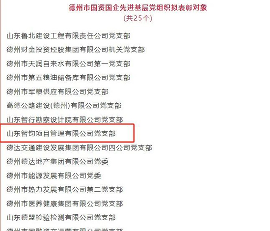 公司黨支部和個(gè)人獲德州市國(guó)資國(guó)企“兩優(yōu)一先”表彰